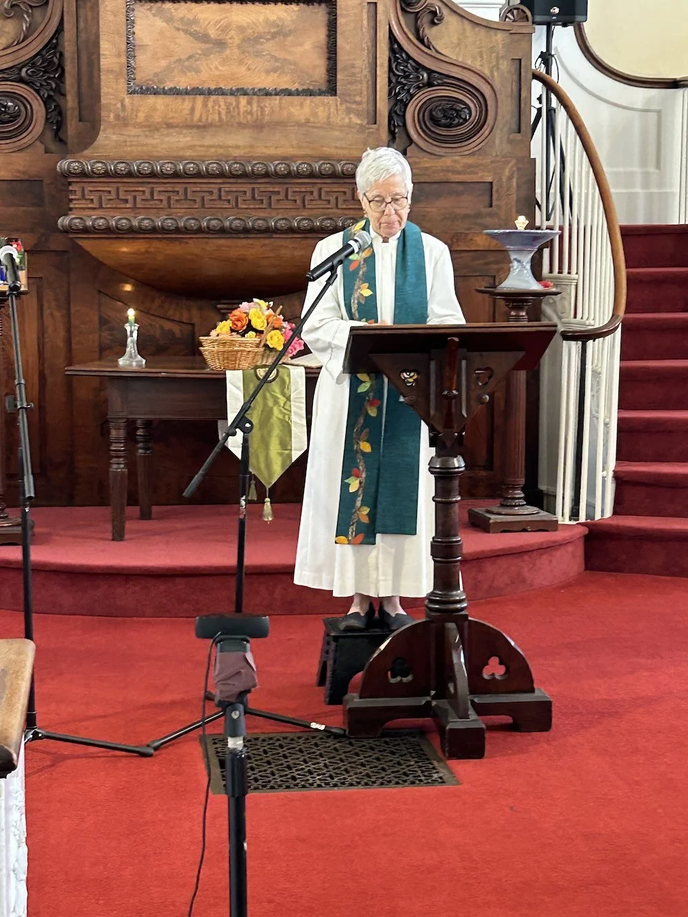 Altar flowers: The order of service includes the dedication of the altar table flowers each week. Members and friends of the congregation contribute for the flowers, which are arranged by the aesthetics group on the Worship Committee