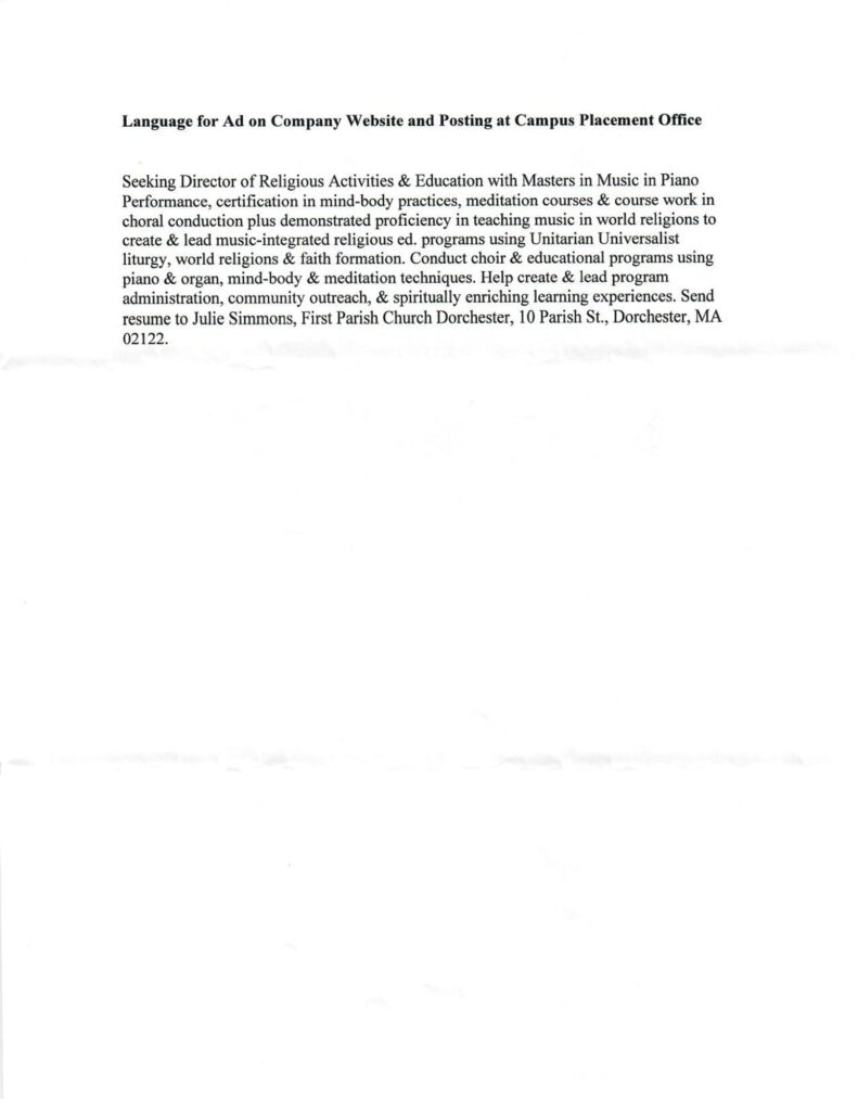10 Parish St., Dorchester, MA 02122 617-436-0527 info@firstparishdorchester.org